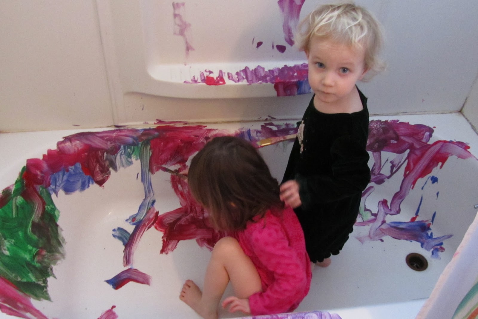 The other day marked our third annual "paint the bathtub in the middle of the winter because we're running out of other things to do inside." Here are some photos: